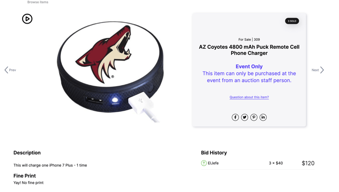 You can see item purchasers under the PURCHASES tab within the item on both the app and the event website. Please note, when you elect to show purchaser names, the site will only display 8 of the most recent purchases.